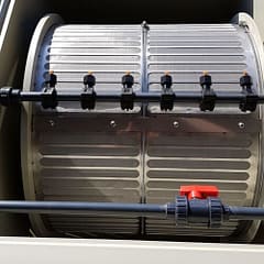 La funzione del filtro a tamburo è quella di filtrare meccanicamente l’acqua contaminata. Un setaccio in acciaio inossidabile RVS 316 di 75 micrometri separa le particelle più piccole dall’acqua e le drena verso l’esterno tramite uno scarico dello sporco. Questo processo di filtraggio è regolato automaticamente da un controller e monitorato da sonde. In caso di malfunzionamento, il filtro spegne automaticamente le pompe di circolazione e del contro lavaggio. Il livello dell’acqua è costantemente monitorato da sonde. Il filtro a tamburo Combi CL65 è realizzato in PP di alta qualità e viene fornito con comando, interruttore per il lavaggio manuale, controller di livello, coperchio e pompa di lavaggio con un rapporto prezzo / prestazioni senza precedenti.