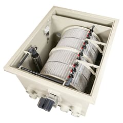 La funzione del filtro a tamburo è quella di filtrare meccanicamente l’acqua contaminata. Un panello con maglia in acciaio inossidabile RVS 316 di 75 micron separa le particelle più piccole dall’acqua e le conduce all’esterno tramite lo scarico. Questo processo di filtraggio è regolato automaticamente da un controller e monitorato da sonde. In caso di malfunzionamento, il filtro spegne automaticamente le pompe di circolazione e contro lavaggio. Il livello dell’acqua è costantemente monitorato da sonde. Il filtro a tamburo PP-100 è realizzato in plastica PP di alta qualità e viene fornito comprensivo di comando, interruttore di copertura di emergenza, lavaggio manuale dei canale, tubazioni complete dalla pompa di lavaggio al canale di lavaggio, regolatore di livello e coperchio a un rapporto prezzo / prestazioni senza precedenti.