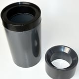 Skimmer AquaForte con un diametro di circa 200 mm e un collegamento del tubo di 110 mm sul lato inferiore.
