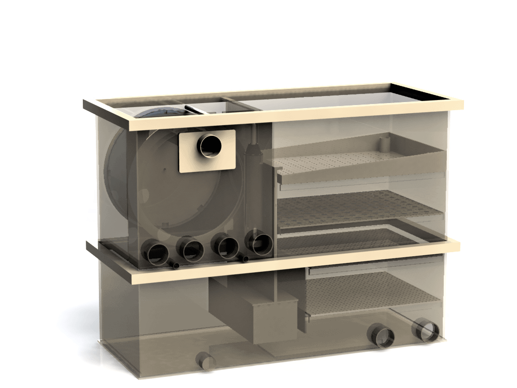 Questo design crea la migliore pre filtrazione attraverso il vaglio del tamburo e la migliore pulizia biologica attraverso la sezione di gocciolamento. L’acqua si rompe continuamente e ad un ritmo elevato, il che significa che l’assorbimento di ossigeno nell’acqua è enorme. Di conseguenza, vi è un continuo degassamento di ammonio e Co2. E così il Trickle Gravity 50 produce una migliore qualità dell’acqua.