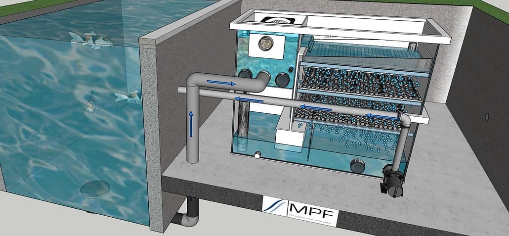 Trickle Gravity 50 è la combinazione di un filtro a tamburo e di un Bakki Shower (filtro a percolazione) che può essere installato a gravità.